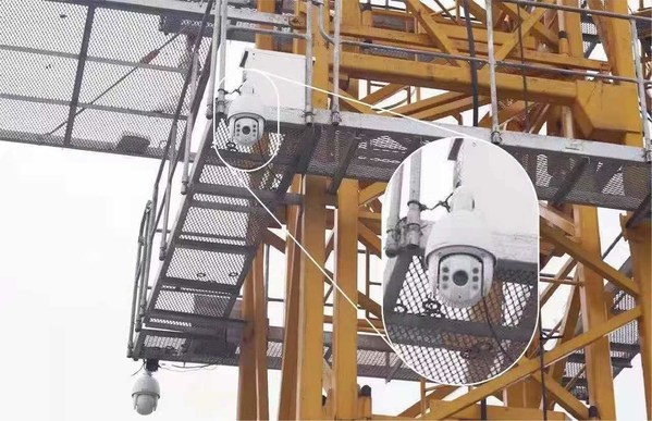 武漢華僑城-紅坊“透明工地”,安裝在塔吊上的高清攝像頭