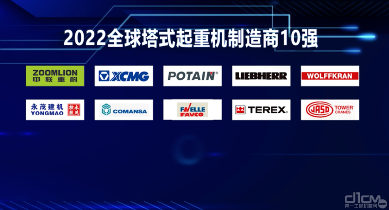 ▲中聯(lián)重科高居“2022全球塔式起重機(jī)制造商10強(qiáng)”榜首
