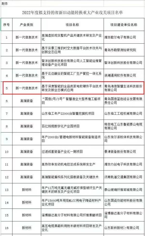 近日,2022年度山東省新舊動(dòng)能轉(zhuǎn)換重大產(chǎn)業(yè)攻關(guān)項(xiàng)目公示,由海信智慧生活公司聯(lián)合海信冰箱公司申報(bào)的“基于深度智能的全品類家電軟硬件平臺(tái)技術(shù)研發(fā)及新業(yè)態(tài)模式應(yīng)用”項(xiàng)目脫穎而出,成為“新一代信息技術(shù)”領(lǐng)域入選的5個(gè)項(xiàng)目之一。