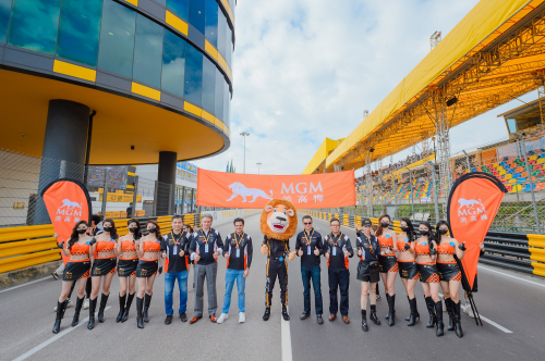 美高梅管理層和吉祥物Leo親臨”美高梅澳門汽車杯”賽事現(xiàn)場,為車手打氣