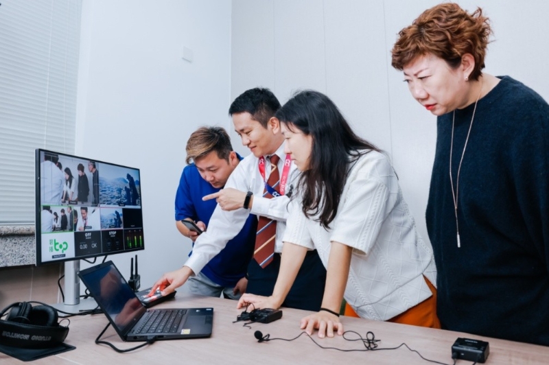 “佳直播”工作人員幫助施耐德電氣“碧播職業(yè)教育計劃”工作人員熟悉直播間操作