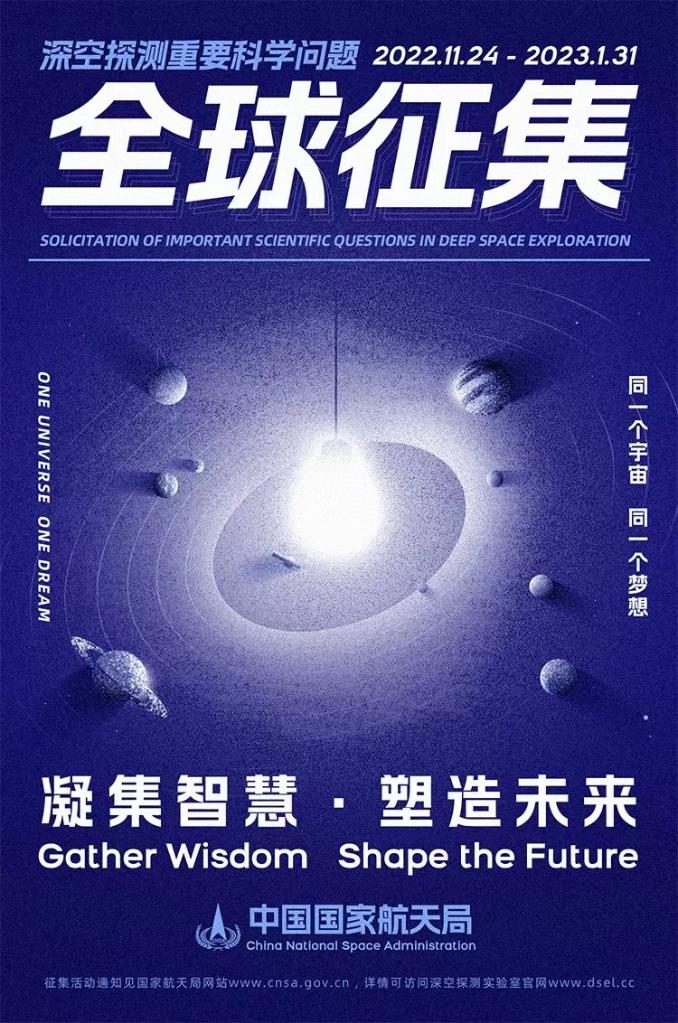 深空探測(cè)重要科學(xué)問題全球征集活動(dòng)海報(bào)。(國(guó)家航天局供圖)