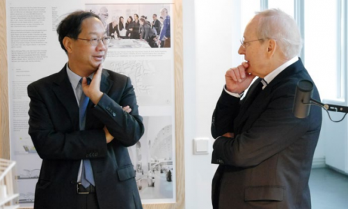 中國駐德前大使史明德先生道賀蓋博教授八十周年生日特展(左: 中國駐德前大使史明德先生)