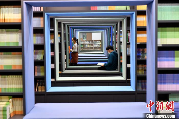 元宇宙體驗、機(jī)器人導(dǎo)引找書、馬鞍型風(fēng)火墻造型的書架、福州油紙傘造型服務(wù)臺、休閑餐吧……11月25日,福州安泰新華圖書城經(jīng)過一年多的重裝升級正式揭開面紗,滿滿的科技感加上高顏值的裝修布局,吸引了許多市民前去“打卡”。(呂明 攝)