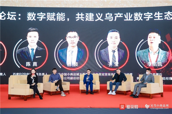 在圓桌論壇環(huán)節(jié),百度B2B業(yè)務(wù)市場(chǎng)負(fù)責(zé)人王莎莎、百度B2B業(yè)務(wù)商務(wù)負(fù)責(zé)人陳真、義烏中國(guó)小商品城大數(shù)據(jù)有公司副總經(jīng)理?xiàng)畈?、義烏美冠貿(mào)易有限公司總經(jīng)理于瑩、義烏市激石網(wǎng)絡(luò)科技有限公司總經(jīng)理李法凱,基于小商品貿(mào)易產(chǎn)業(yè)共性和行業(yè)痛點(diǎn),深入剖析了百度愛采購(gòu)和義烏小商品城的平臺(tái)價(jià)值,并圍繞B2B數(shù)字平臺(tái)如何賦能中小企業(yè)、解決行業(yè)共情痛點(diǎn)、建設(shè)義烏產(chǎn)業(yè)數(shù)字生態(tài)展開深入洞察和探討。楊波提到,在疫情反復(fù)、新業(yè)態(tài)新模式快速發(fā)展的背景下,數(shù)字化貿(mào)易已經(jīng)成為發(fā)展趨勢(shì),義烏小商品城與愛采購(gòu)的合作可以幫助更多商家享受高效精準(zhǔn)的流量賦能、訂單撮合等服務(wù)。其他嘉賓也一致認(rèn)為,愛采購(gòu)與義烏小商品城的合作可以強(qiáng)化產(chǎn)業(yè)集聚勢(shì)能,用科技讓義烏產(chǎn)業(yè)生態(tài)更加繁榮。