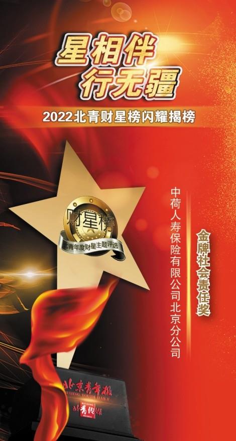 匯聚智慧與力量、樹立行業(yè)標(biāo)桿,由北京市主流媒體北京青年報主辦的“北青財星榜”不停地向社會傳遞著屬于金融的溫度。11月17日,“2022北青財星榜”閃耀揭榜,中荷人壽北京分公司榮獲金牌社會責(zé)任獎。