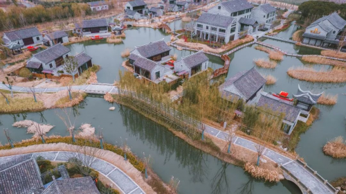 淮劇小鎮(zhèn)坐落在江蘇鹽城建湖,總面積3.6萬㎡,立足于古村沙莊的地理和歷史風貌,以獲得文華獎的淮劇《小鎮(zhèn)》為藍本,按照"修舊如舊,建新如舊”的思路改造而成,既有新建又有修繕,內容包括:對現有的民房升級改造、新建仿古建筑安置房、配套建設綜合管網、道路、景觀、綠化等附屬工程。