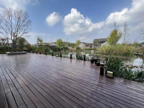 為了最大程度實現設計師的意圖,中建八局三公司基礎設施分公司創(chuàng)新建造,融現代建造技術與傳統(tǒng)古建造型為一體。深入打造“村在蕩中,蕩在村中”的獨特空間風貌,營造蘆蕩濕地氛圍,梳理沙溝水系,做足生態(tài)保障。在融入蘆蕩總體風貌基礎上,體現精美精致、生態(tài)古樸特色,整體環(huán)境做足生態(tài)感,建筑風貌保持原鄉(xiāng)感。
