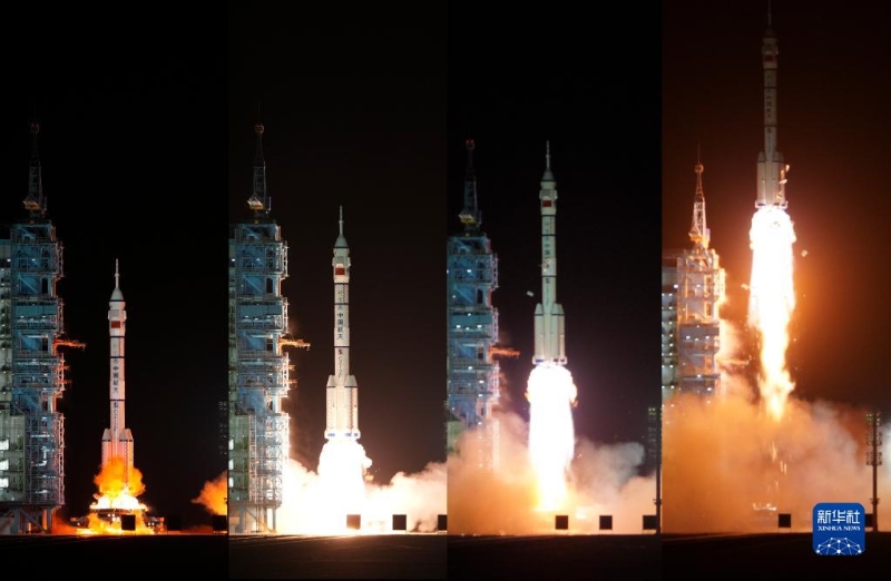 11月29日23時(shí)08分,搭載神舟十五號(hào)載人飛船的長征二號(hào)F遙十五運(yùn)載火箭在酒泉衛(wèi)星發(fā)射中心點(diǎn)火發(fā)射,約10分鐘后,神舟十五號(hào)載人飛船與火箭成功分離,進(jìn)入預(yù)定軌道,航天員乘組狀態(tài)良好,發(fā)射取得圓滿成功(拼版照片)。新華社記者 李剛 攝