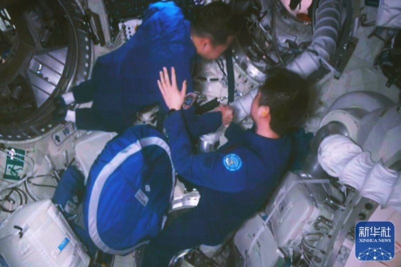 從太空俯瞰,神舟十四號航天員乘組第一次在空間站見證同伴從地球出發(fā),履約而來。