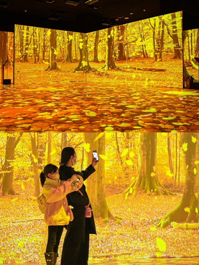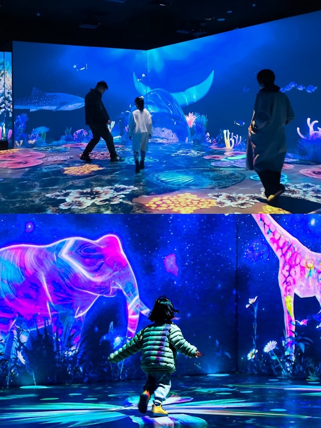 室內(nèi)(A區(qū))展區(qū)整體面積253平方米,此次也全新展映了“浩瀚星空”“奇幻海底”“萬象森林”“四季流轉(zhuǎn)”四個全新主題。為營造極致的沉浸體驗,全場采用數(shù)十臺海信4K智能激光工程投影機,將現(xiàn)場所有光影畫面無縫融合;全4K畫質(zhì)及運動補償功能,讓視覺畫面更具層次感和流暢感,為探展者打造了一場“強交互、強體驗、強沉浸”的光影體驗,樂趣十足。