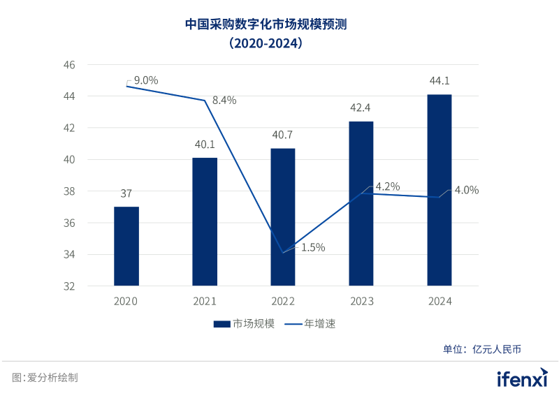 采購(gòu)數(shù)字化是企業(yè)數(shù)字化轉(zhuǎn)型的重點(diǎn)領(lǐng)域,企業(yè)用戶愿意為此持續(xù)投入。愛(ài)分析推算2022年中國(guó)采購(gòu)數(shù)字化市場(chǎng)規(guī)模為40.7億元,相較于去年有微弱增長(zhǎng)。在變革環(huán)境下取得如此成績(jī)殊為不易,證明了采購(gòu)數(shù)字化市場(chǎng)的增長(zhǎng)韌性和可持續(xù)性。