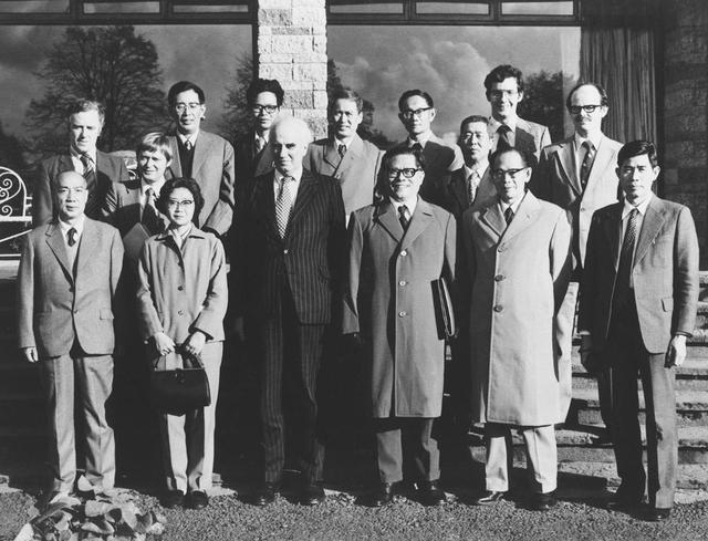 1964年6月,江澤民同志(二排右一)在法國(guó)艾克斯萊班出席國(guó)際電工委員會(huì)會(huì)議期間同與會(huì)代表合影。新華社發(fā)