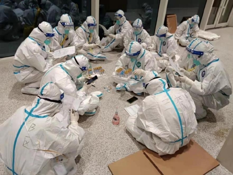 由黨員、醫(yī)務(wù)部主任齊磊帶領(lǐng)的20名醫(yī)護(hù)人員組成了西寧愛爾眼科醫(yī)院第四批支援隊伍,帶著院領(lǐng)導(dǎo)的囑托、同事的祝福、親人的牽掛踏上了支援高風(fēng)險區(qū)域核酸采集的征程。這批支援隊伍主要承擔(dān)青藏高原農(nóng)副產(chǎn)品集散中心和城北區(qū)中高風(fēng)險地區(qū)重點人群核酸采集工作。面對任務(wù)重、風(fēng)險高、工作雜,且時間不確定,有任務(wù)隨叫隨出的實際,醫(yī)護(hù)人員們每天都不敢熟睡,多日高強度的工作,早已成為了“黑眼貓”。他們深知與病毒“零距離”接觸會有極高被傳染風(fēng)險,可毅然決然披上“戰(zhàn)袍”,拴上“百寶袋”,積極投入到持續(xù)的戰(zhàn)斗中。哪怕工作再艱難,身體再疲憊,精神再煎熬,隊員們都會堅持克服困難,他們沒有選擇逃避和退縮,用實際行動彰顯著醫(yī)生的大愛與無私,詮釋著愛爾人的責(zé)任與擔(dān)當(dāng)。
