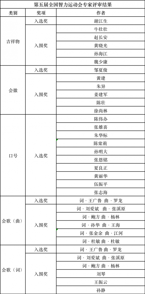 第五屆全國(guó)智力運(yùn)動(dòng)會(huì)專家評(píng)選結(jié)果