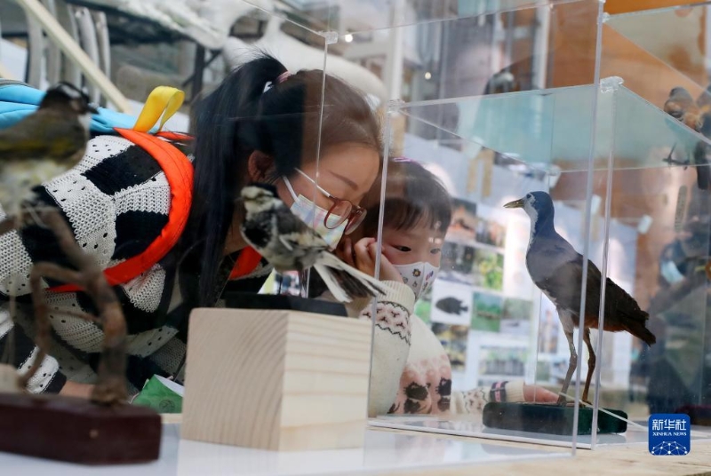 12月7日,參觀者在上海自然博物館觀看白胸苦惡鳥標本。