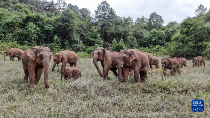2021年6月3日在昆明市晉寧區(qū)雙河彝族鄉(xiāng)拍攝的野象(無(wú)人機(jī)照片)。新華社發(fā)