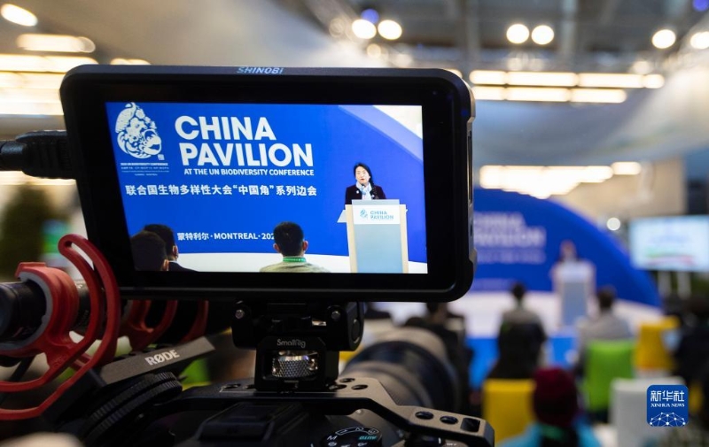12月8日,在加拿大蒙特利爾舉行的《生物多樣性公約》第十五次締約方大會(COP15)第二階段會議上,中國角開展的一場邊會活動聚焦生態(tài)保護紅線。 新華社發(fā)(鄒崢攝)
