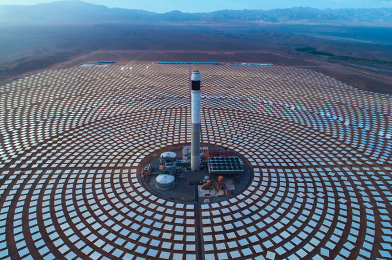這是2018年6月7日在摩洛哥瓦爾扎扎特拍攝的努奧光熱電站項(xiàng)目三期工程(航拍照片)。從2015年起,中國(guó)電建集團(tuán)下屬的山東電建三公司在瓦爾扎扎特承建努奧光熱電站項(xiàng)目二期和三期工程。努奧光熱電站為超過(guò)百萬(wàn)的摩洛哥家庭提供清潔能源。