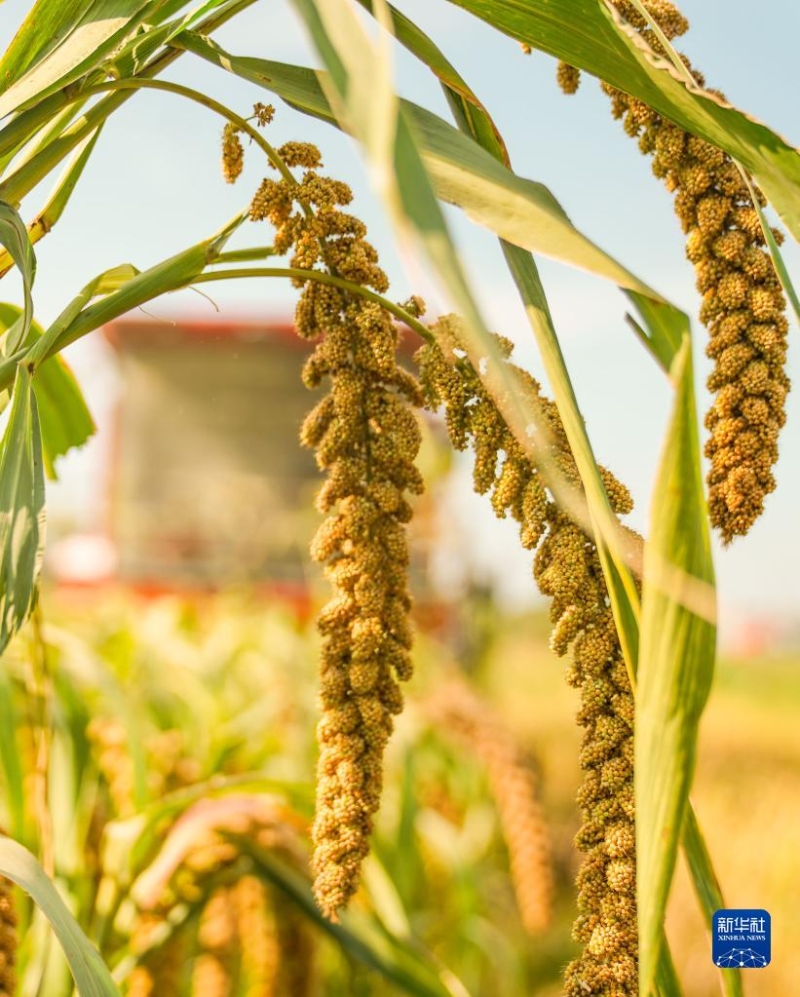 在山東省鄒平市西董街道一種植基地拍攝的谷子(9月2日攝)。新華社發(fā)(董乃德 攝)