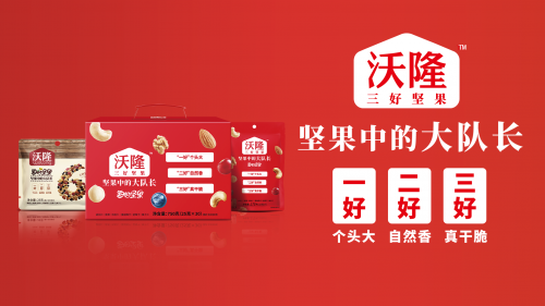 主打高品質(zhì)堅(jiān)果,沃隆結(jié)合其產(chǎn)品健康好吃的特質(zhì),提出“三好堅(jiān)果”的品牌理念,即“個(gè)頭大、自然香、真干脆”,并將品牌定位為“堅(jiān)果中的大隊(duì)長(zhǎng)”。