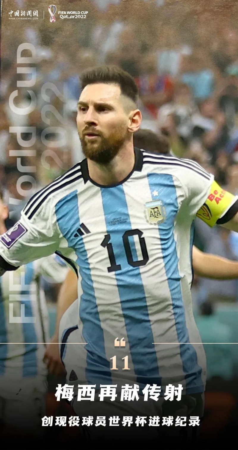 第69分鐘,梅西帶球突破后送出妙傳,阿爾瓦雷斯完成最后一擊,將場上比分?jǐn)U大為3:0。在阿爾瓦雷斯梅開二度的同時(shí),梅西再次刷新了由自己保持的世界杯單場傳射最年長紀(jì)錄。