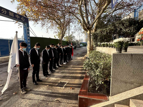 活動(dòng)在莊嚴(yán)肅穆的氛圍中進(jìn)行,上午10時(shí),防空警報(bào)鳴響,全體參會(huì)人員立正默哀一分鐘。隨后,分公司開(kāi)展“云”寄哀思活動(dòng),組織廣大黨員和職工通過(guò)登錄“國(guó)家公祭網(wǎng)”在線(xiàn)公祭,依次進(jìn)行點(diǎn)燭祭奠同胞、獻(xiàn)花默哀追思、鳴鐘警示醒世、寄語(yǔ)和平祈愿等環(huán)節(jié)。水木秦淮項(xiàng)目黨員代表前往鼓樓區(qū)挹江門(mén)煤炭崗叢葬地紀(jì)念碑舉行悼念活動(dòng),紀(jì)念碑前,黨員代表共同追憶那一段困難深重的歷史,并向革命先烈默哀、三鞠躬致敬并敬獻(xiàn)鮮花。
