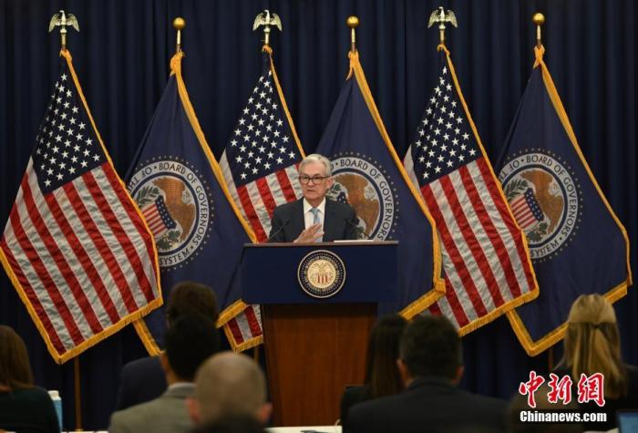 圖為美聯(lián)儲主席鮑威爾當(dāng)天在貨幣政策例會后出席記者會。 中新社記者 陳孟統(tǒng) 攝