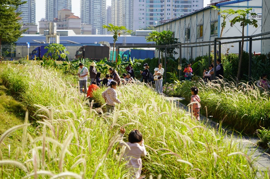 筍崗火車花園經(jīng)歷共同選址、共同設(shè)計(jì)、共同建造、共同維護(hù)、共同運(yùn)營(yíng),以低造價(jià)、低維護(hù)的“草根”路徑進(jìn)行城市綠地微更新,激活廢棄綠地空間,重構(gòu)鄰里關(guān)系。深規(guī)院在傳統(tǒng)設(shè)計(jì)工作基礎(chǔ)上,探索了“政府+居民+社會(huì)組織+技術(shù)單位”的共創(chuàng)團(tuán)隊(duì)、“一小帶一家”的參與機(jī)制及“居民自治+社區(qū)輔助”的自運(yùn)營(yíng)機(jī)制,加上人性化的場(chǎng)所營(yíng)造,這里已經(jīng)逐步已成為新的社區(qū)中心,一個(gè)讓所有人在家門口暢享自然生活的活力場(chǎng)所——越來(lái)越多的交流在這里發(fā)生,活動(dòng)多了,溝通多了,人與人的感情濃了,真正成為承載居民城市記憶和情感的共同家園。