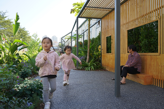 筍崗火車花園是依托深圳“共建花園”項(xiàng)目打造的“街邊型口袋公園”,項(xiàng)目從設(shè)計(jì)到建造、運(yùn)維均引導(dǎo)市民參與,以“親自然”、“兒童友好”和“低碳無(wú)廢”理念,挖掘場(chǎng)地火車文化特質(zhì)及居民火車情結(jié),與市民共創(chuàng)家門口的“火車花園”主題方案,將原本垃圾堆疊的消極邊角地改造成為全齡友好的社區(qū)新中心。以最低廉的價(jià)格、親人的姿態(tài),為老百姓在家門口提供了一個(gè)既可以承載記憶、又可以親身照料的親自然空間,使荒廢的邊角地提升為具有社會(huì)凝聚力的情感場(chǎng)域,實(shí)現(xiàn)了從小花園到大家園的轉(zhuǎn)變。