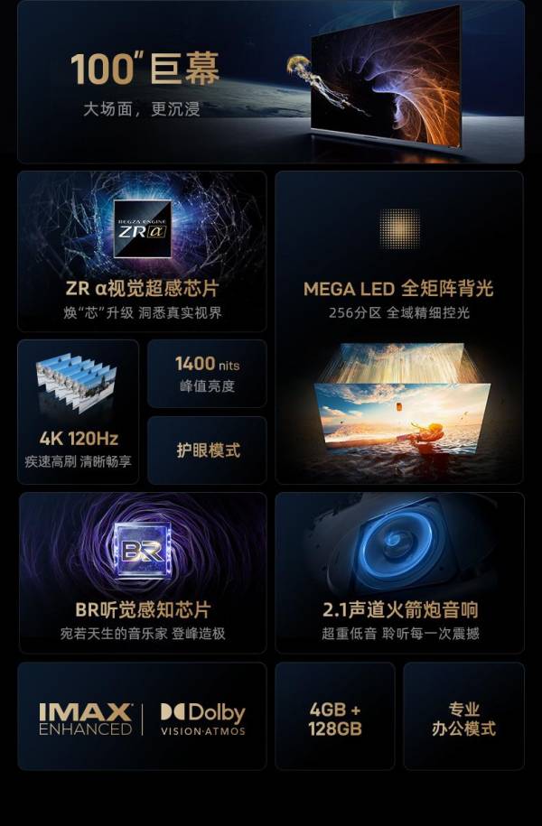 據(jù)悉,100吋Z870系列最大的亮點在于——煥“芯”升級,稍早前東芝發(fā)布的MiniLED旗艦770系列首次搭載了ZR視覺睿智芯片,在Z870系列配置上,全新升級的ZRα視覺超感芯片,加上東芝在音質(zhì)的傳統(tǒng)優(yōu)勢,旗艦配置拉滿,重新定義巨屏。