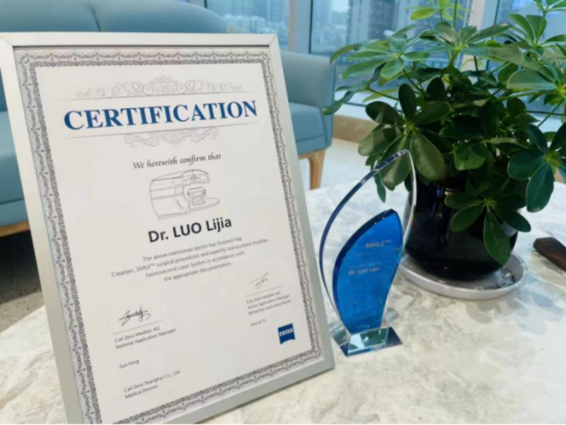 ▲圖為“全飛秒smile國際認證醫(yī)師”證書