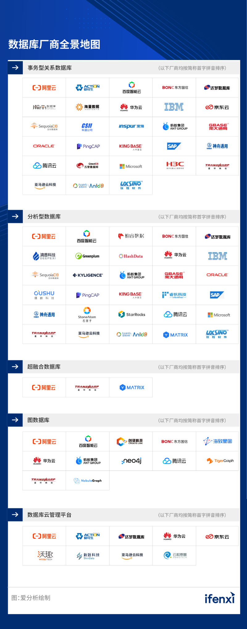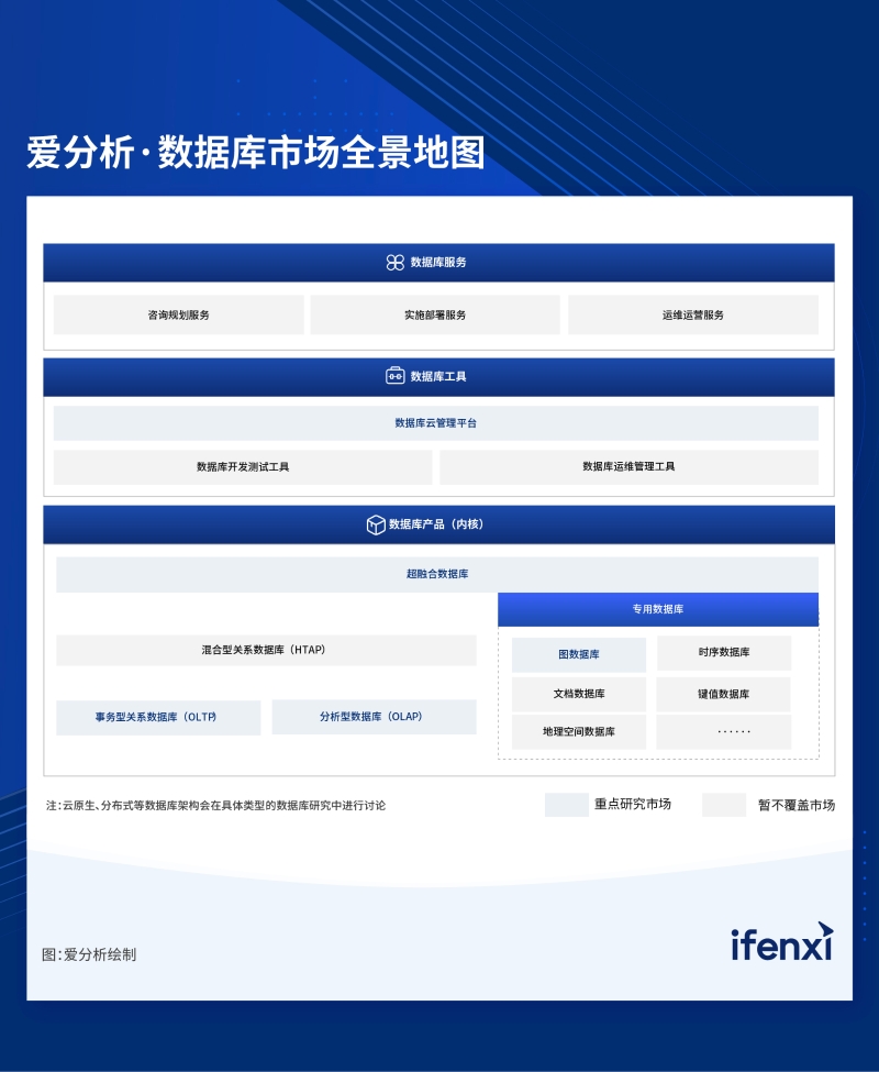 綜合考慮細(xì)分市場的市場規(guī)模、企業(yè)關(guān)注度等因素,愛分析在本次研究中選取了事務(wù)型關(guān)系數(shù)據(jù)庫、分析型數(shù)據(jù)庫、超融合數(shù)據(jù)庫、圖數(shù)據(jù)庫、數(shù)據(jù)庫云管理平臺5個細(xì)分市場,進(jìn)行重點研究。