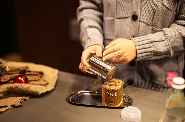 美諾邀請(qǐng)多位品牌好友聚集美諾之家,在濃厚節(jié)日氛圍的籠罩之下,感受家居與體育帶來的不同感官體驗(yàn)。 沿著復(fù)古風(fēng)格的樓梯往上,三層VIP lounge 里意大利marmorino藝術(shù)涂料裝潢的墻面詮釋著獨(dú)特的節(jié)日氛圍感。開放式的空間,使用全套美諾廚房系列手作一道圣誕甜品來紀(jì)念這天的溫馨甜蜜。