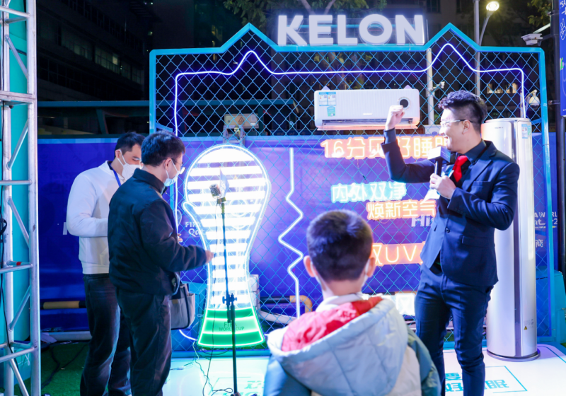 12月18日,科龍空調(diào)與海信一起以當(dāng)下最流行的方式搭建了“世界杯冠軍之夜”露營地,不僅通過巨型天幕、暖心營燈、綠茵草地、樂隊DJ、LED大屏等營造出濃厚的露營氛圍,更在現(xiàn)場開設(shè)了燒烤攤位、飲品吧臺,讓整個的球迷感受著世界杯的激情與狂歡??讫埧照{(diào)希望通過更年輕、更新潮的方式與新一代消費溝通,堅定地落實品牌年輕化戰(zhàn)略。