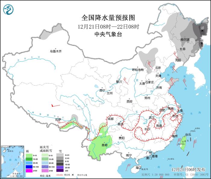 12月21日08時(shí)至22日08時(shí),新疆西北部、內(nèi)蒙古中東部、遼寧東部、吉林、黑龍江等地的部分地區(qū)有小到中雪,其中,吉林東部、黑龍江東部等地的部分地區(qū)有大到暴雪(10~18毫米)。四川盆地南部、西藏東南部、云南大部、臺(tái)灣島等地的部分地區(qū)有小雨或雨夾雪。西藏中南部、陜西北部、河北中北部、遼東半島、山東半島、浙江中北部等地的部分地區(qū)有4~6級(jí)風(fēng)。渤海海峽、黃海大部海域、東海大部海域、臺(tái)灣海峽偏南海域、臺(tái)灣以東洋面、巴士海峽、南海東部和中部海域、南海西南部海域?qū)⒂?~8級(jí)、陣風(fēng)9~10級(jí)的西北到東北風(fēng)。