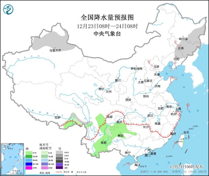 全國(guó)降水量預(yù)報(bào)圖(12月23日08時(shí)-24日08時(shí))