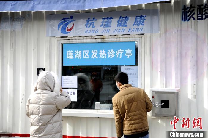 圖為市民在查看發(fā)熱診療亭外張貼信息?!「咪?攝