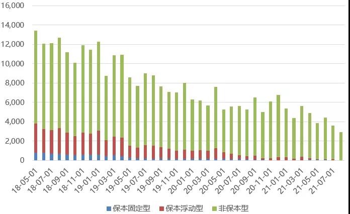 圖1:資管新規(guī)后各收益類型理財(cái)產(chǎn)品發(fā)行量均下行