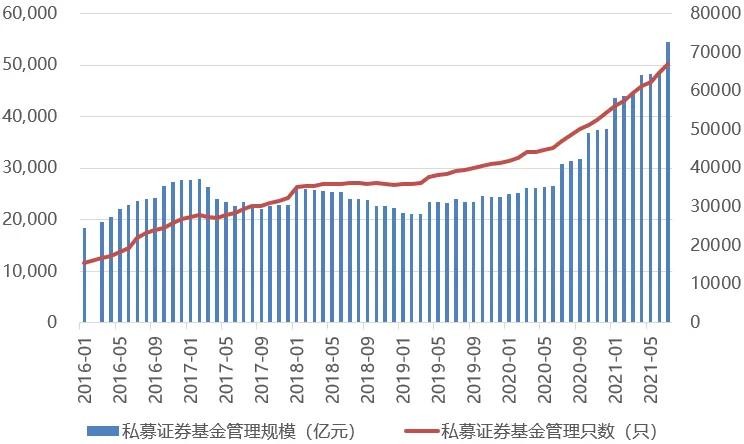 私募證券基金發(fā)展同樣也不遜色,根據(jù)Wind統(tǒng)計(jì),私募證券管理規(guī)模,從2016年初的1.8萬億到如今的5.5萬億,產(chǎn)品數(shù)量從15000只增長到67000只,規(guī)模與數(shù)量均實(shí)現(xiàn)了跨越式的增長。
