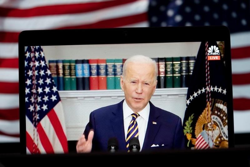 美國(guó)總統(tǒng)拜登3月8日宣布,美國(guó)將對(duì)俄實(shí)施能源禁運(yùn),停止從俄進(jìn)口石油、天然氣和煤炭。圖為當(dāng)天拍攝的拜登在華盛頓白宮發(fā)表講話的視頻畫(huà)面。新華社記者劉杰攝