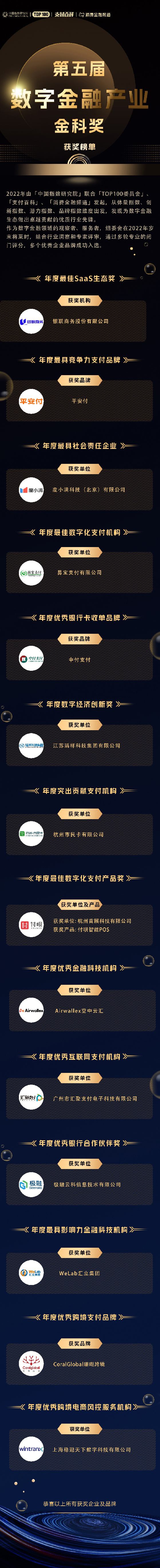 2022第五屆數(shù)字金融產(chǎn)業(yè)金科獎獲獎名單一覽: