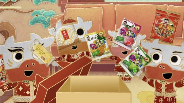 動(dòng)畫(huà)視頻短片中,在歡快的鑼鼓聲中,顧家家居的吉祥物顧家牛與旺旺的卡通形象旺仔一起送出聯(lián)名好禮。本次聯(lián)名中,顧家家居和旺旺推出了三款聯(lián)名跨界設(shè)計(jì)產(chǎn)品,分別是以旺旺經(jīng)典產(chǎn)品仙貝、雪餅QQ糖為靈感,專(zhuān)門(mén)針對(duì)年輕人的家居需求設(shè)計(jì)的掀貝沙發(fā)椅、學(xué)餅桌和懶人神器QQ躺。