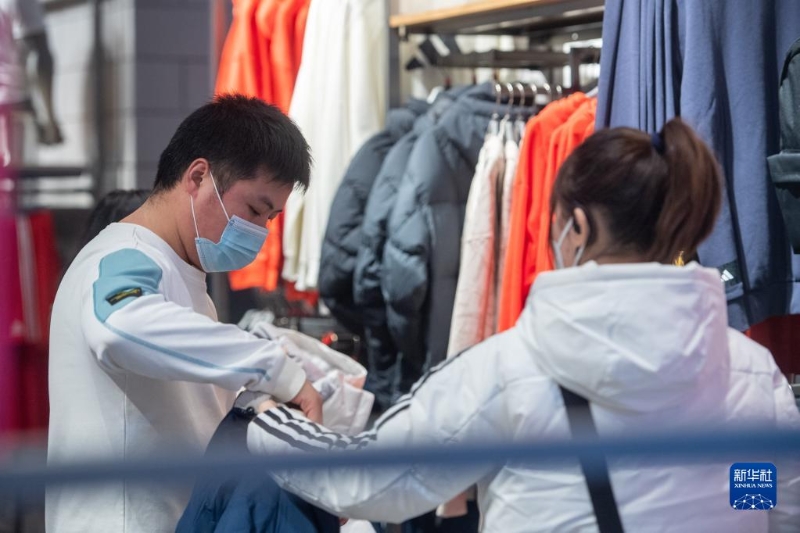 12月23日,在位于重慶解放碑商圈主打運(yùn)動(dòng)品牌的重慶八一廣場(chǎng)內(nèi),市民游客選購(gòu)商品。
