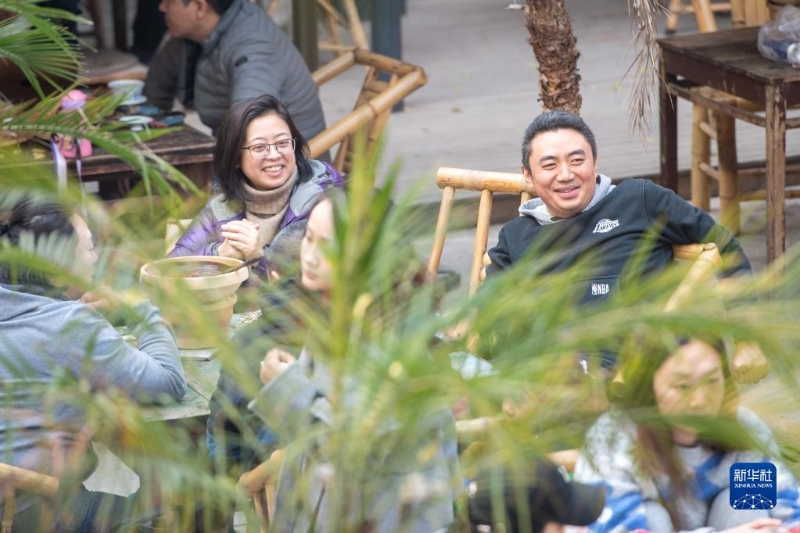 12月24日,市民游客在位于重慶解放碑商圈的著名景點(diǎn)山城巷一家店內(nèi)聊天休息。