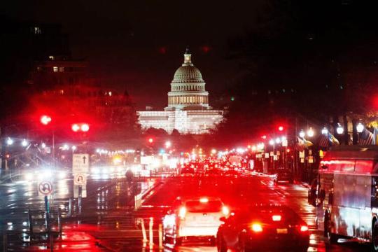 這是12月22日在美國華盛頓拍攝的雨中的車輛和國會大廈。美國國會參議院22日投票通過總額達(dá)1.7萬億美元的聯(lián)邦政府2023財年(2022年10月1日開始)綜合撥款法案,以確保聯(lián)邦政府有足夠資金運(yùn)轉(zhuǎn)到明年9月底。(新華社記者 劉杰 攝)