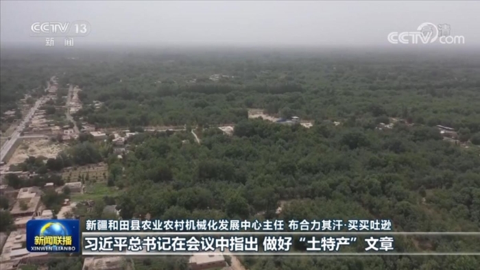 新疆和田縣農(nóng)業(yè)農(nóng)村機械化發(fā)展中心主任 布合力其汗·買買吐遜:習(xí)近平總書記在會議中指出,做好“土特產(chǎn)”文章。薄皮核桃是和田的土特產(chǎn)之一,我們?nèi)h核桃面積30萬畝、產(chǎn)量達6.07萬噸。把特色產(chǎn)業(yè)轉(zhuǎn)化為優(yōu)勢產(chǎn)業(yè),輻射帶動5萬多戶。接下來,我們將不斷延伸產(chǎn)業(yè)鏈,提高農(nóng)產(chǎn)品附加值,帶動更多的農(nóng)民群眾持續(xù)穩(wěn)定增收。