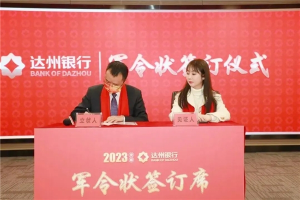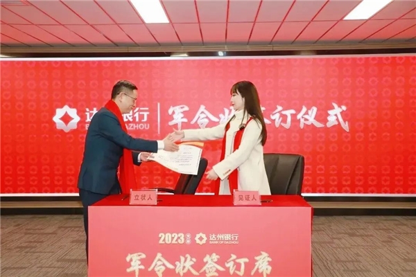 在擬任行長(zhǎng)于倩的見(jiàn)證下,各一級(jí)支行行長(zhǎng)、直屬支行行長(zhǎng)以勇于擔(dān)當(dāng)、敢作敢為的昂揚(yáng)斗志簽署并宣讀了“軍令狀”,向達(dá)州銀行總行領(lǐng)導(dǎo)表決心、表誠(chéng)心。
