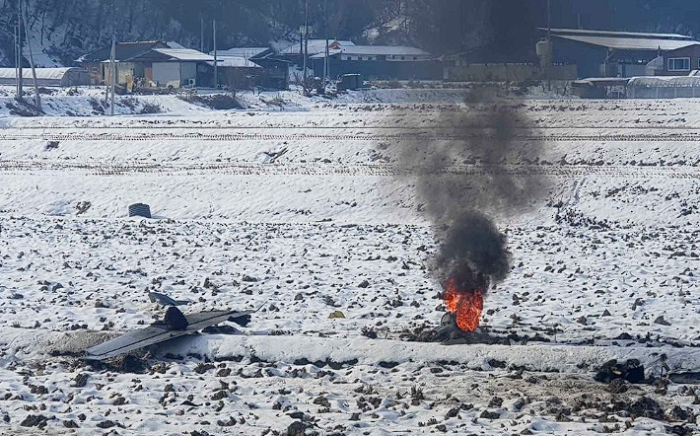 圖為墜機(jī)現(xiàn)場(chǎng)(韓聯(lián)社)