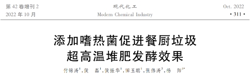 近日,“農(nóng)業(yè)資源環(huán)境一體化解決方案提供商”中農(nóng)創(chuàng)達技術(shù)團隊基于餐廚垃圾和秸稈為堆肥原料,研究嗜熱菌作為堆肥發(fā)酵菌劑對好氧堆肥發(fā)酵進程影響的論文《添加嗜熱菌促進餐廚垃圾超高溫堆肥發(fā)酵效果》在國內(nèi)綜合性化工技術(shù)核心期刊《現(xiàn)代化工》上發(fā)表。